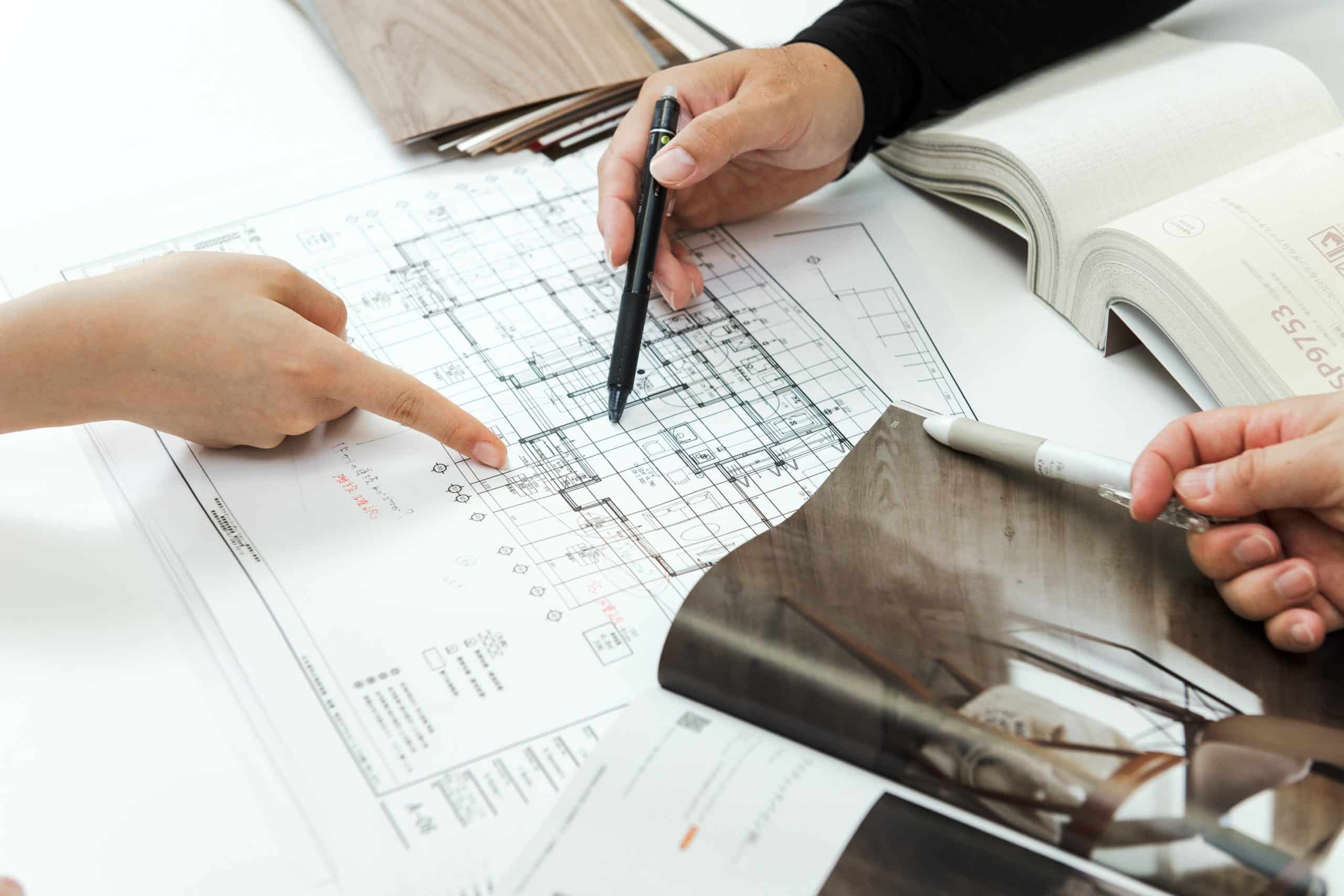 社内の設計士が、お客様のご要望をじっくりとヒアリング。間取りやデザイン、素材など、あらゆる面で自由な設計が可能です。