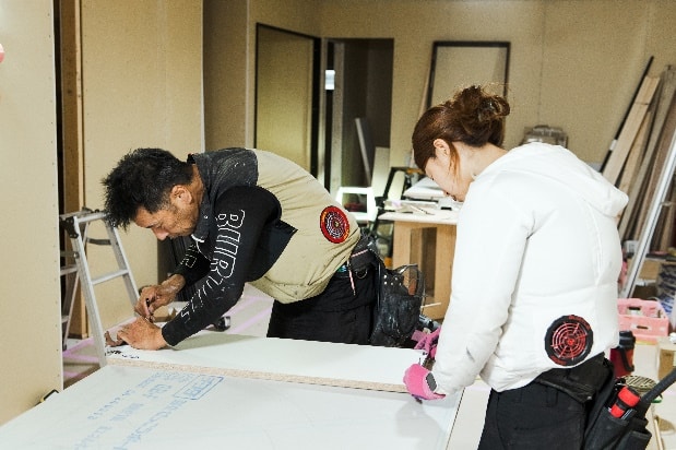 職人さん同士や現場監督とも気軽に話ができ、コミュニケーションの取りやすい、働きやすい環境です。